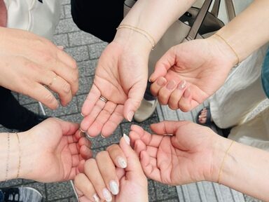 「お互いの誕生石チャームを付けて、お揃いのブレスレットに。外れないから、いつも一緒にいる感覚です」(施術中にいただいたお声より)