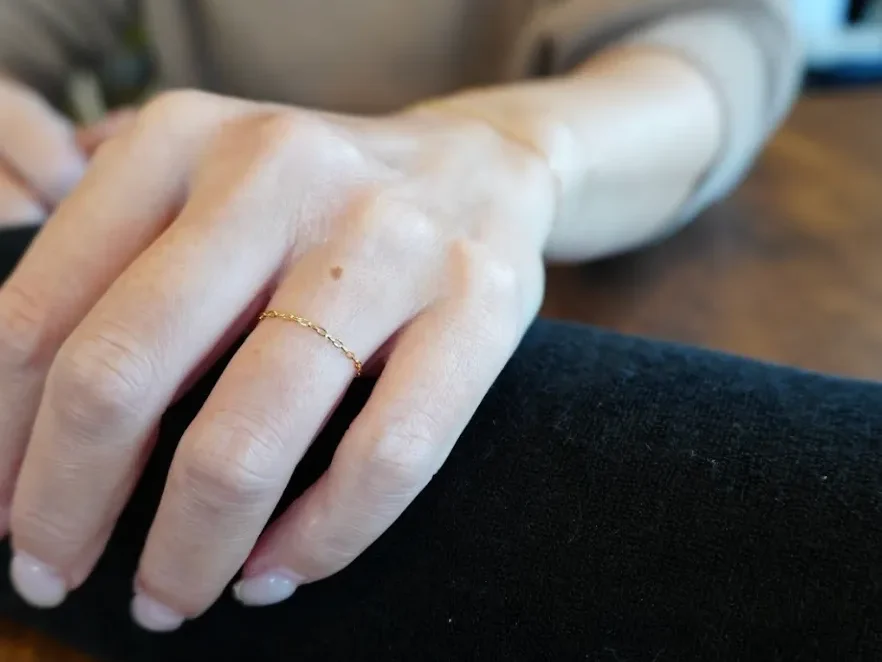 金属の指輪とは違う、しなやかな着け心地が特徴で、指の関節などに合わせて微調整できるため、むくみやすい方にも好評です。